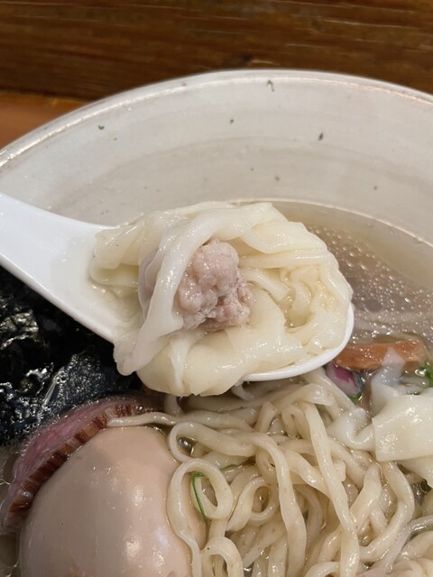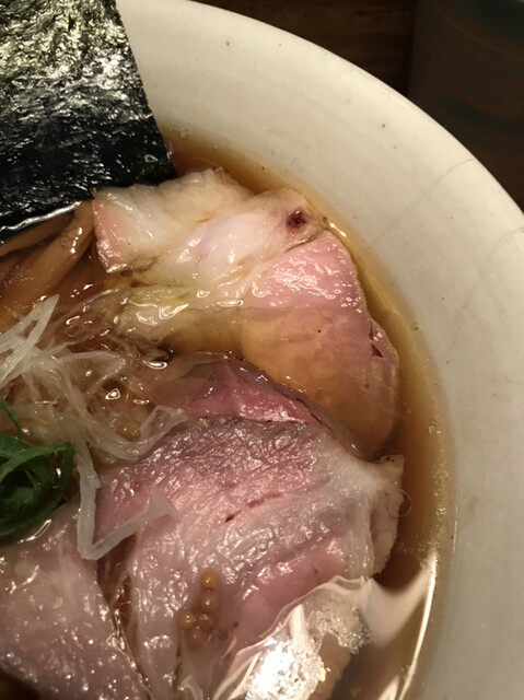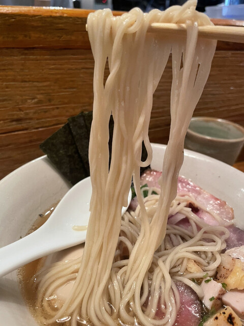 スープは、鶏何中心だと思いますが塩味はかなり抑えめで鰹節を馴染ませると和なのですが、最後はブイヨンを連想させて洋を感じてとても美味しいでしす。