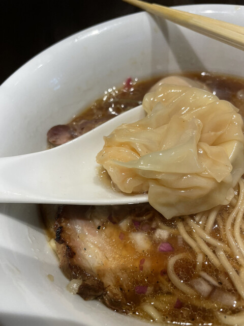 トッピングは具がギュッと詰まった雲呑が美味しかったです。焼豚はどれも美味しく炙られた香りがスープに溶け込んで凄いです。