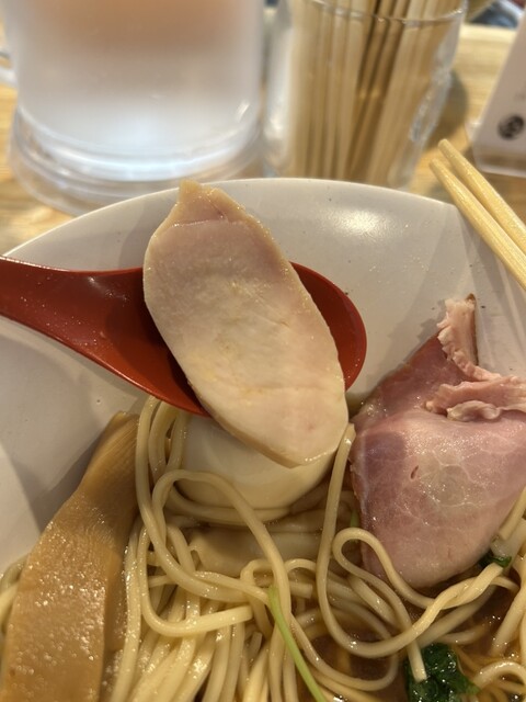 トッピングも素晴らしく、チャーシューは豚2種類と鶏の計3種類あり、抜群の厚さでソフトで肉肉しく、材木メンマは筋もなくねっとりした食感が、ワンタンはしっかりと詰まった餡が最高でした。