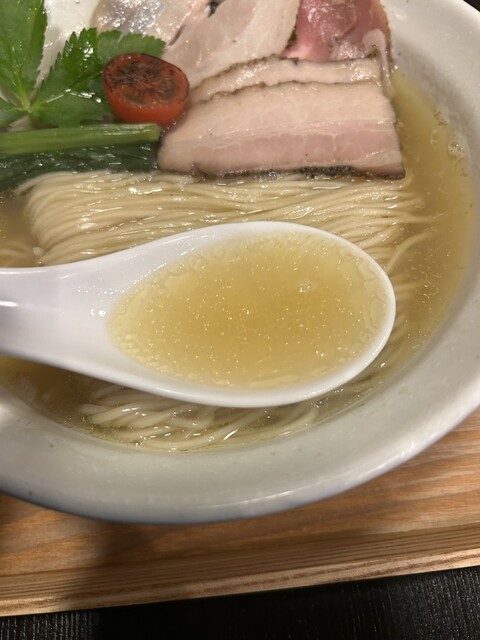 席に着いて着丼したそれは、澄んだスープと、整った麺線と、麺線をちゃんと主張する為に上部に飾られた想われるトッピングが、旨くない料理は出さないと主張しているように見えます。