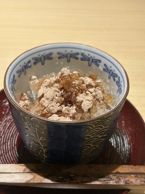 ひとつ一つ、丁寧に炊かれた煮物は季節がら冷たく冷やして。ゼリーのお出汁がかかり、振り青柚が