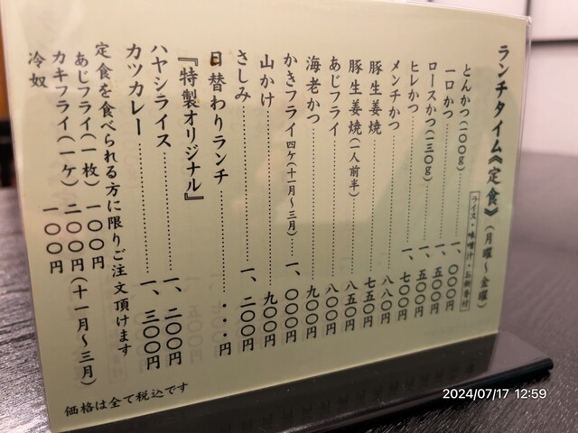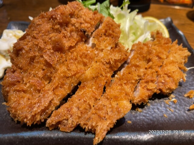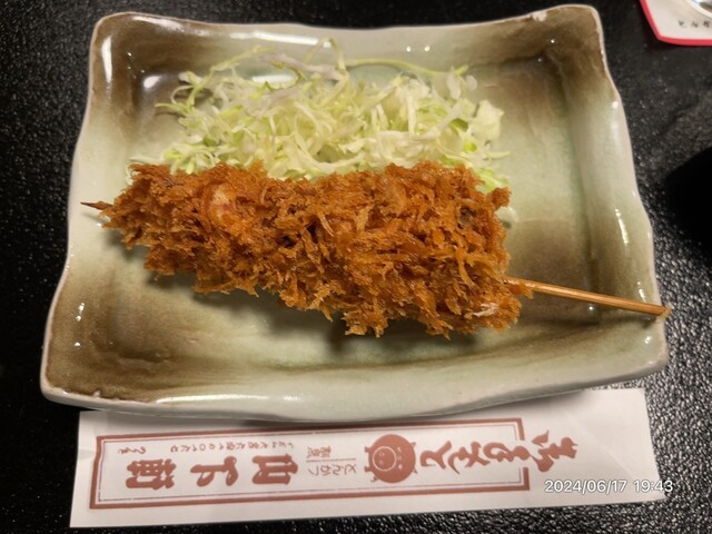 この間、サラダに始まり、明太チーズ焼き、牛串、お造りをいただき、特上ロースカツ定食もいただきました。