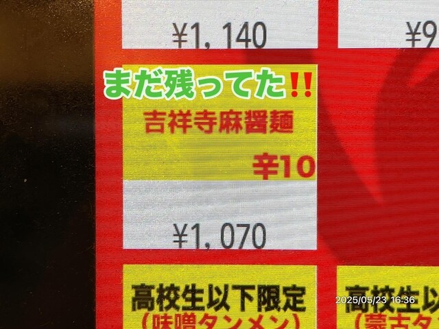 今日から販売の限定・吉祥寺麻醬麺はありました。20食だとキツいけど、40食ならなんとかなるな。