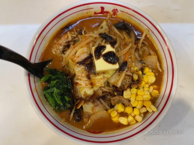 通算67杯目のゴモミ※画像はコーン、ほうれん草、バター、マー油乗せ