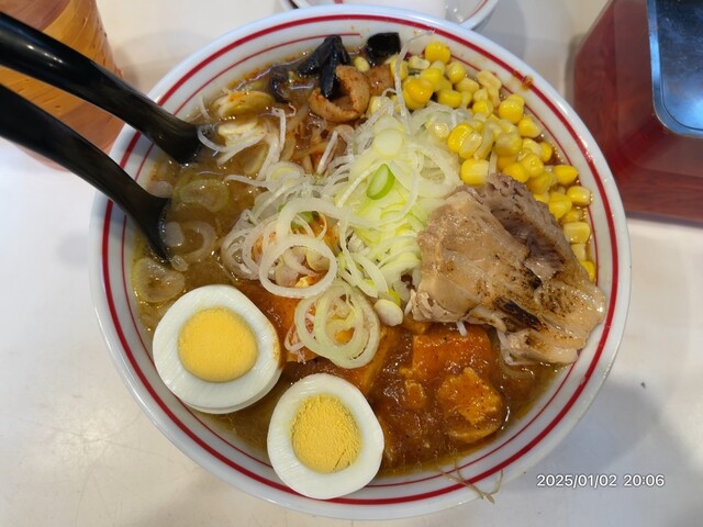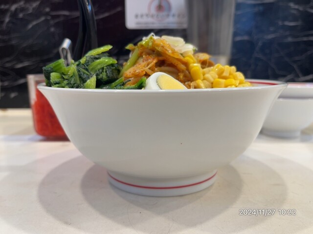 野菜大盛り、コーン、ほうれん草と生卵も押して1,550円。