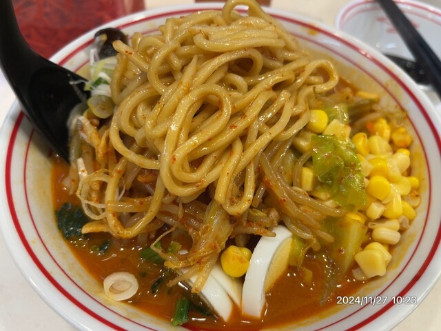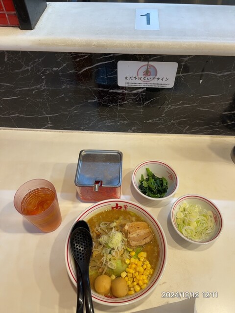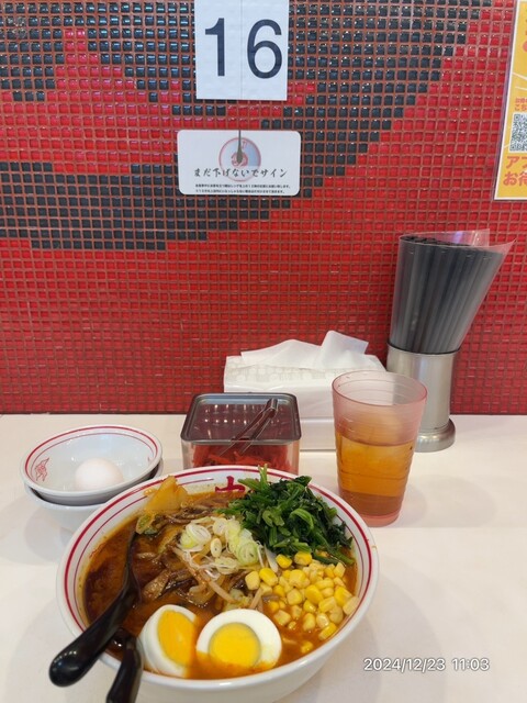 限定の極味噌卵麺をメインに、コーン、ほうれん草、ネギ、マー油を連打で1,530円。