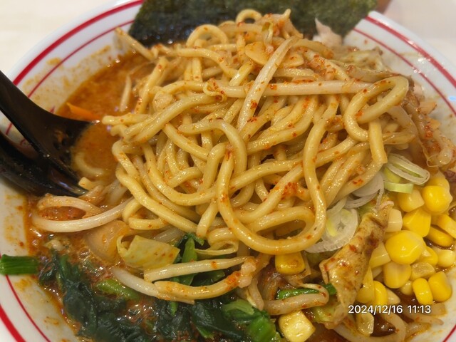 通算63杯目のゴモミ※画像は麺半分、コーン、ほうれん草、マー油オン