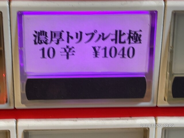 辛さアップは10倍まで、野菜大盛不可、麺は北極扱いで並盛1.5玉超特大まで。