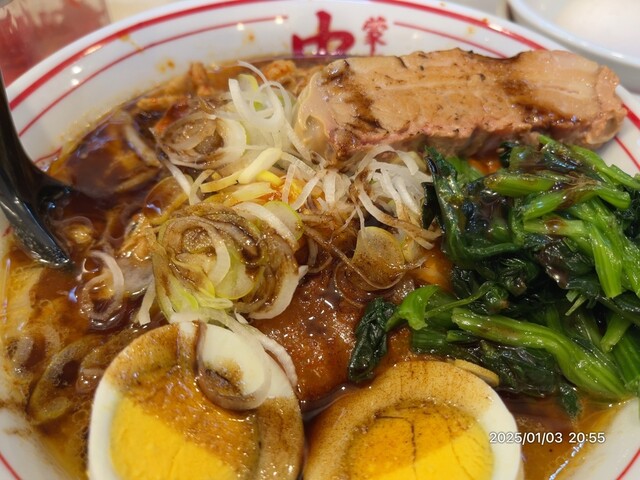 通常の北極ラーメンに塩味の特製あんかけがかけられています。餡にはもやし、にら、人参、キクラゲが入っており、ショウガがピリリときいています。塩分控えめで作られたあんかけと北極が混ざりゆくグラデーションの味変は中本の真骨頂。食べ進めると辛くなる蒙古タンメンと逆で、餡が混ざる事により辛さがマイルドになっていく本メニューは麺を啜り終わった時に角の取れた優しい味わいの北極スープを作り出します。