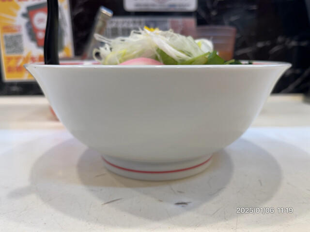 さすがにこの時間に通常量食べると夜の中本に支障が出るので麺半分にしとこう。