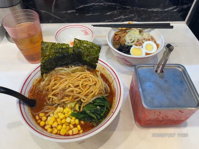 【限定】新大久保北極※麺半分、コーンほうれん草オン&半蒙古丼※ライス抜き800P到達