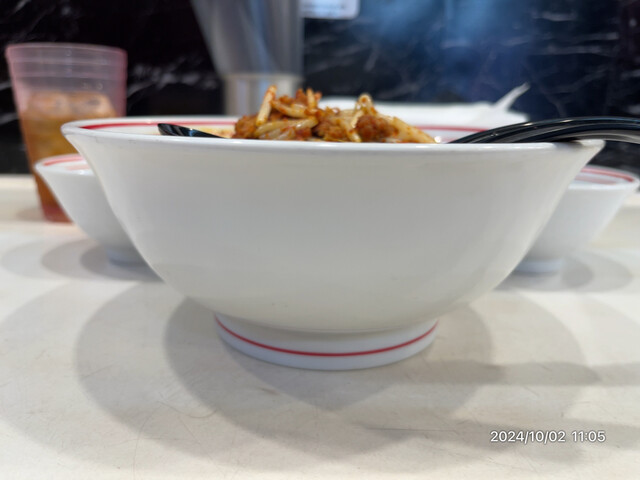 行き着く所はここ。そしてここは終着点ではなく「中本マニア」としてのスタート地点となります。これを「辛い」ではなく「うまい」と思ったらもう中本無しでは生きて行けない「こっちの人」の仲間入りです。定番メニュー最高峰の辛さを誇るスープには北極ラーメンと同じく少量のもやしとバラ肉のみ。先代中本氏曰く「辛さと旨さのバランスを考えたらこれくらいが丁度良い」との言葉通り、ただただ辛いのでは無く辛さと味を純粋に味わうのに相応しい辛さ。