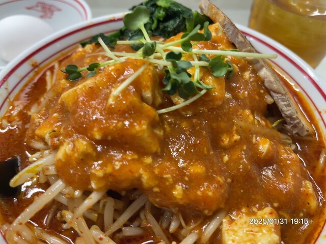 どろっどろの辛さ10の樺太麻婆を混ぜながら麺をいただきます。