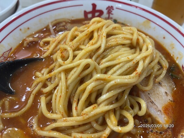 2024年6月より久喜にて提供開始。考案者は焼きそば王となりつつある横田店長。 ニラ、人参、もやし、キャベツ、きくらげ、玉ねぎ、ひき肉、にんにく、ねぎとたっぷりの野菜を煙をモクモクとあがるほど中華鍋で炒めて作られる、その名の通り焼きそばです。トッピングは揚げ玉、マヨネーズ、紅生姜、青のりが乗せられています(苦手なものは抜けます)。横田店長らしく奇を衒わない所謂ソース焼きそばですが「ピリ辛」とある通りノーマルはソースに冷し味噌が少々加えられています。場所柄、子供連れが多い久喜のお客さんが気軽に来店できるように、との配慮から非辛も用意されており、こちらは普通のソースのみです。辛さアップに対応をすれば遠方からもお客さんが来るのではないかと安易に考えてしまいますが、ガッツリ中華鍋で野菜を炒め調理に手間もかかる本作は、あくまで地元のお客さんの安心メニューでありたいという横田店長らしい優しさが込められています。 中本三昧になると他の外食をほとんどしなくなりますが、中華鍋でガツガツと調理された焼きそばを落ち着いて食べるというのはどこか懐かしさを感じます。 中本の歴史で焼きそばは2005年の「懐かしのソース焼きそば」が初めての発売でしたが価格はその当時と同じ750円(発売時)。ここにも横田店長の意気込みを感じずにはいられません。 辛さアップ不可、野菜大盛不可、麺は中本通常麺で大盛までです。 テイクアウトにも対応し、テイクアウトは持ち帰り茹で麺です。