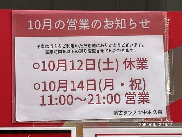 月曜だけど15時閉店。