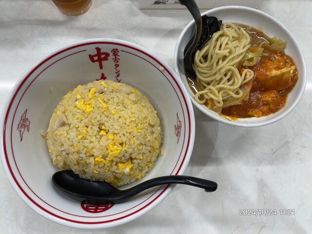 2021年3月22日より千葉、船橋の店コラボで発売。船橋の貝森主任の力作です。通常の「チャーハン」に流行りの「麻辣」を加えて作られた辛めのチャーハン。元となる麻辣はひき肉に味噌、中本一味唐辛子、クラッシュニンニクを混ぜ合わせ香ばしさが立つ程度に炒め、ニラ、輪切り唐辛子、山椒を加えた特製です。この麻辣餡と溶き卵、ライスを強めに炒めて作られます。鼻から抜ける山椒の爽やかな香りと仄かな辛さがご飯の一粒一粒にコーティングを施し、食べ続ける事に楽しみすら感じさせます。