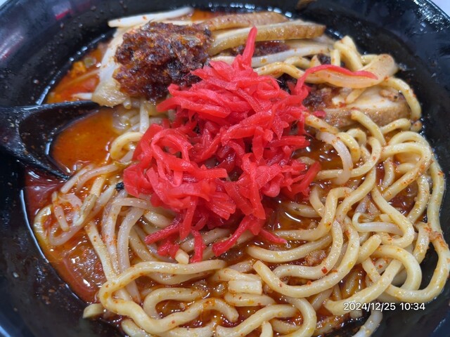 2025年2月限定メニューとして市川にて発売開始、考案者は東江孝輔店長。読み方は「シャキシャキタンタンメン」。中本のベーススープを使用し、ねりごまやマー油と合わせた担々スープに、みんな大好き「北極やさいシャキシャキ」の炒め野菜と甘辛の豚挽肉、糸唐辛子が乗っています。人気の担々スープにシャキ野菜と来たら相性が悪いはずがありません。