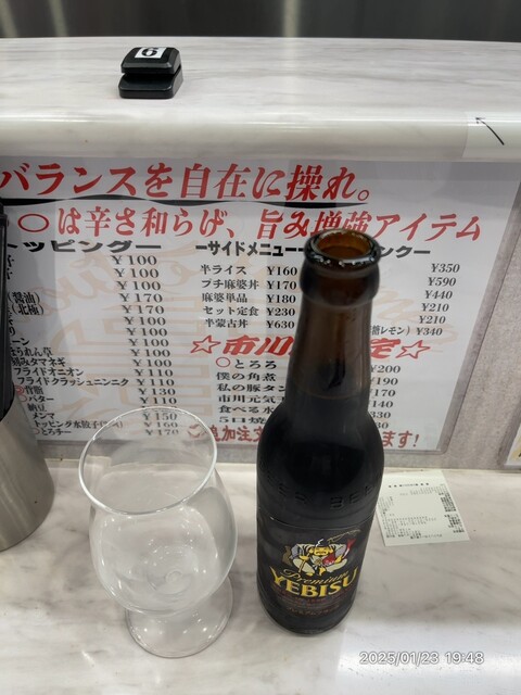 初訪問で五目蒙古タンメンは食べてるから蒙古タンメン麺半分+コーン+エビスの黒瓶他で3Pを狙いたいw