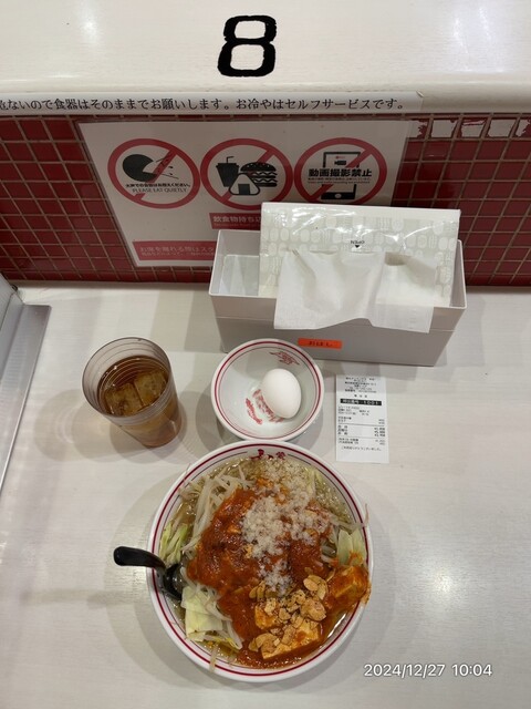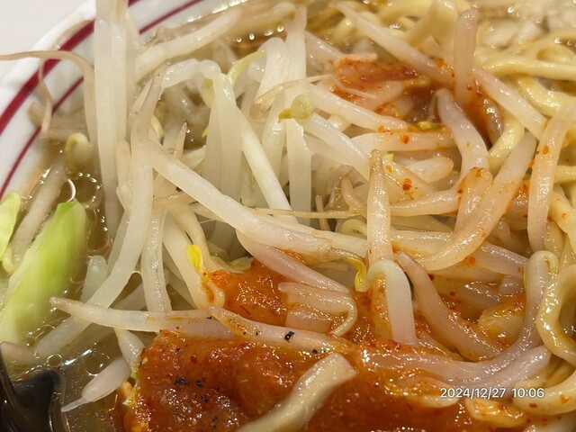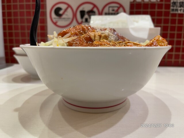 辛さアップは不可、野菜大盛不可(大盛相当)、麺は並盛1.5玉の特大まで。