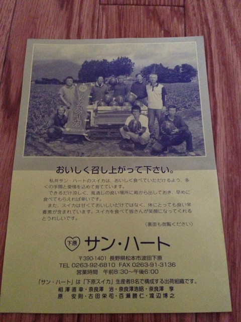 シャキシャキ感は信州「下原」スイカはNo.1ですね。何というんでしょう…他県のスイカはグニャっとした感じに思えてしまう…
