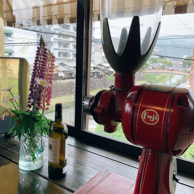 外の景色とレトロなミルメーカー