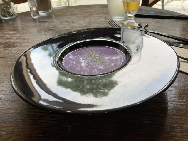 冷製の「むらさき芋のポタージュ」は、濃いけどさっぱりしていて、夏のスープとして最高です。