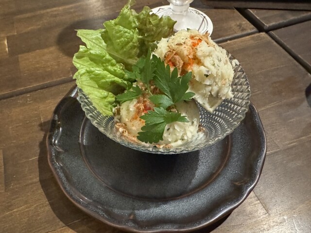 前菜に「アンチョビポテト」、ピンクケッパーが効いてて美味しいのです^_^