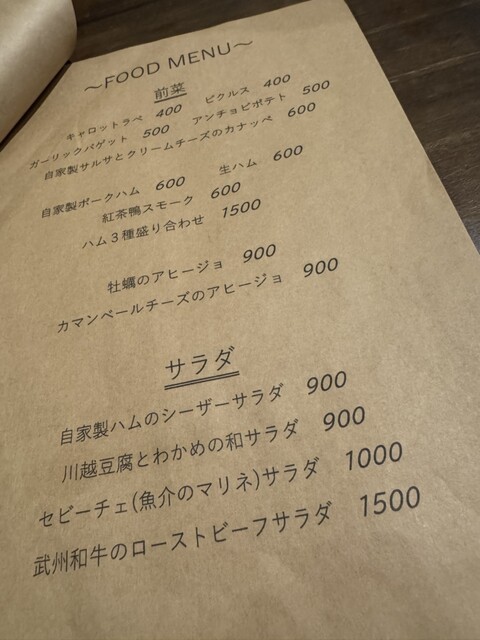 おかわりのビールと共に前菜の提供、豚ハムの塩加減が汗ばんだ身体をほぐしてくれます。