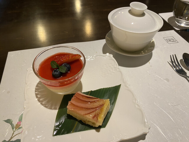 デザートと一緒に提供の「台湾凍頂烏龍茶」、口の中をさっぱりさせてくれ、満足感が増しました。