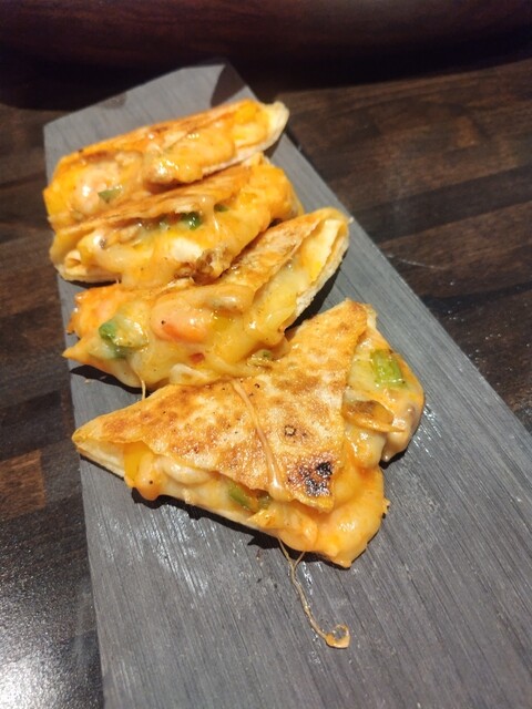 セットの3種がくる前に、ニラ玉オムレツ(520円)、ナシゴレン(1250円)、シーフードのポケットピザ(1100円)も合わせてオーダーしました。