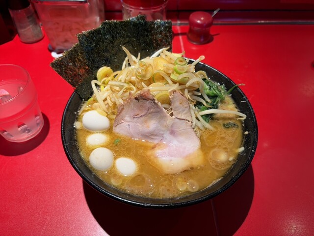 今日は、中盛りラーメンにネギもやしとうずらの卵をトッピングしました。お好みは、麺固めだけです。