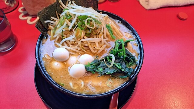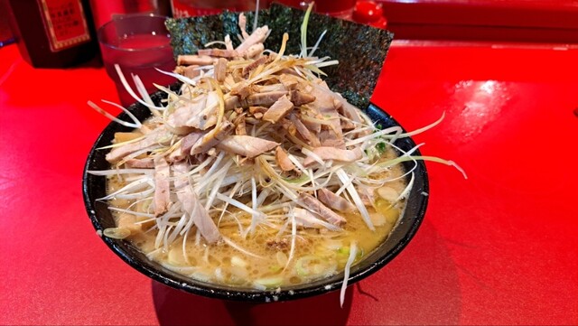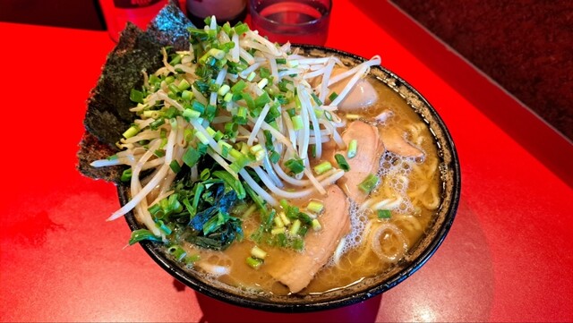 チャーシュー麺に辛みネギ、うずらの卵、極太メンマ