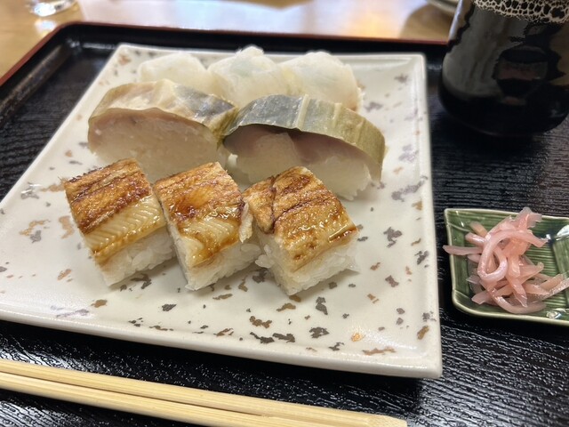 むし寿司1800円 が珍しく食べてみたく訪問致しました。お昼から瓶ビールを飲みながら三種盛り2700円をつまみ、よそのお客さんの食べてるのをキョロキョロ!おいなりさんも、巻寿司も食べたくなる〜昔ながらの建屋に京寿司がマッチ!誘惑に負けておいなりさん2個400円を注文。優しいお味に感動!美味しゅうございました。