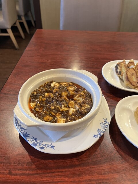 お土産確保のお祝いで一人餃子と麻婆豆腐を注文。