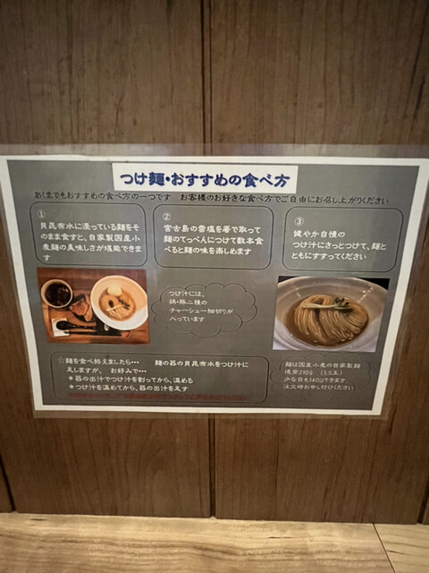 テーブルの前に貼ってあるつけ麺の食べ方に