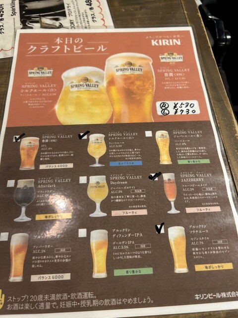 クラフトビール狙いでしたが、飲んだことある銘柄ばかりでしたので、樽生ワインのカベール450円。