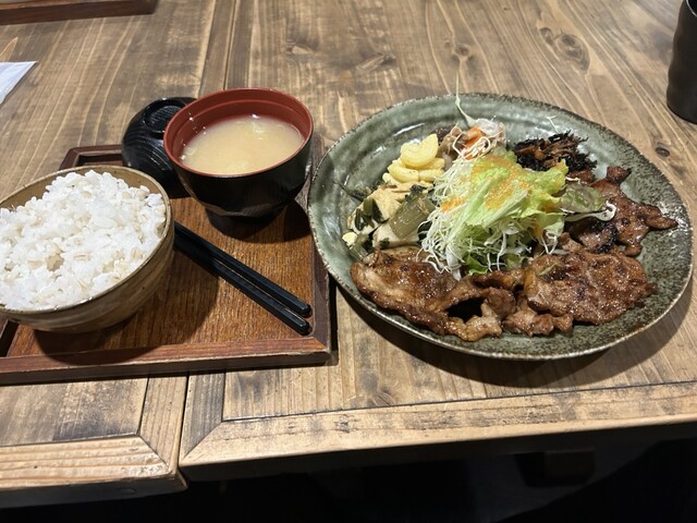 ビールがなくなった頃、しょうが焼き定食が到着します。