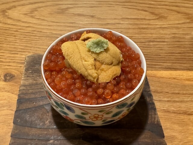 ししとうのおひたし、いくらとウニ丼、お蕎麦をいただきました。