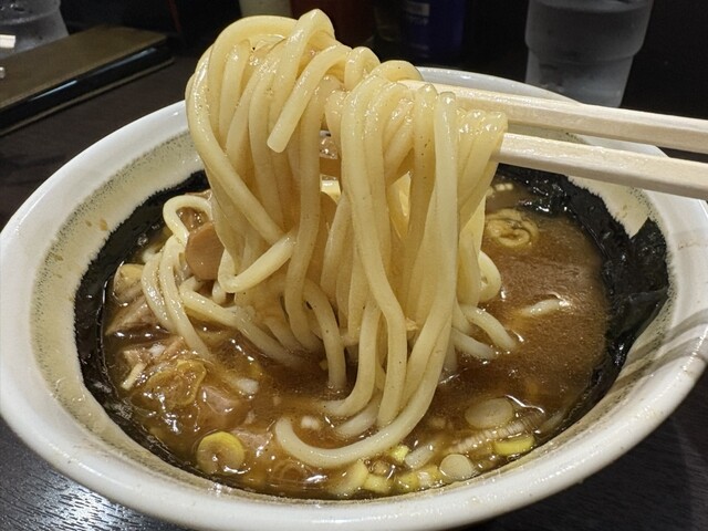 動物系のコクと香ばしい魚介の香りはツルモチ食感の麺とともに健在です。スープ割りして完食完飲です。