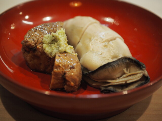 今回小宮大将もパワー全開. 一番高価な根室産トロ秋刀魚(2千円/本)、デカい品質良い日立産黒鮑、宍道湖希少な天然鰻、羽幌大きい牡丹海老(Tomisuiさんから仕入れ)、仙鳳趾牡蠣、出水鯵と萩の鰹など, ここでしか味わえない圧巻の京料理と握りを楽しめる唯一のお店.
