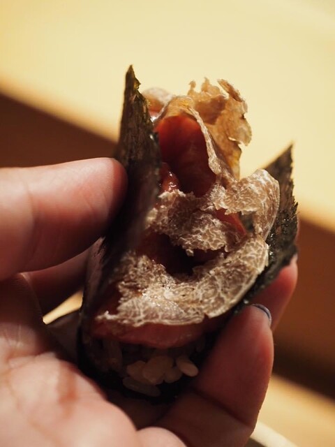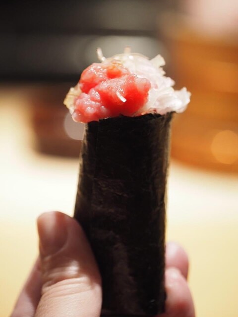 11. 手巻寿司2: 焼きザブトンとトリュフの手巻き