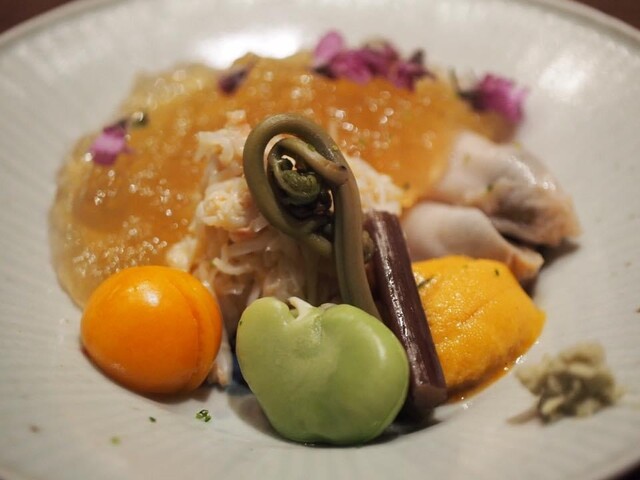 ① 松葉蟹 あん肝ペースト柚子ジュレ