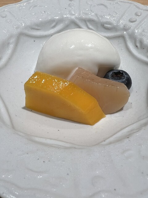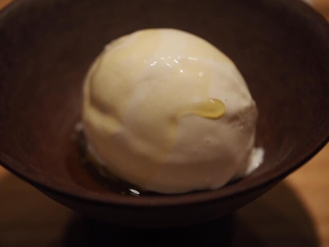 13. 自家製塩アイス (ソース:“10年熟成の味醂" か ”Castel di Lego Trantoi Galioto Olio Extra Vergine di Oliva” のオリーブオイル )