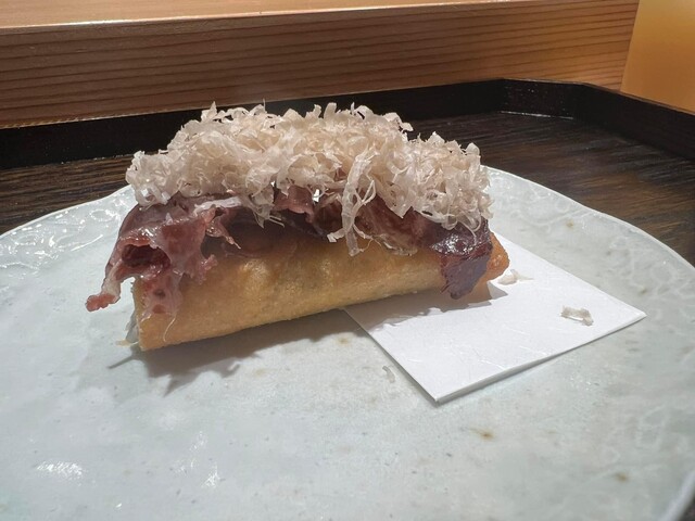 6. ブルーチーズの春巻き 牛肉生ハムのせ トリュフがけ