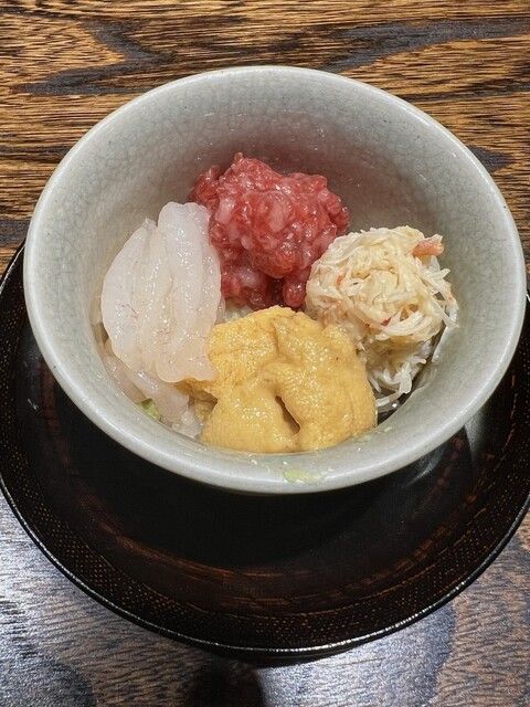 ⑤小丼 北海道塩水ウニ、鳥取セコガニ、赤身牛肉