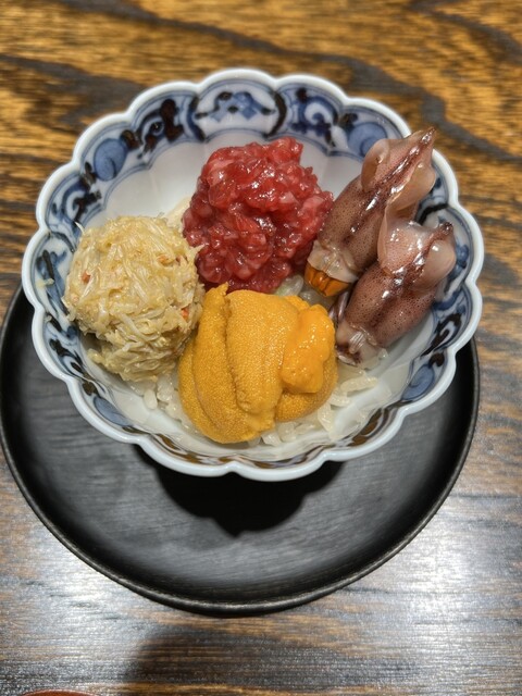 ⑤小丼 北海道ウニ、毛蟹、赤身牛肉、蛍烏賊