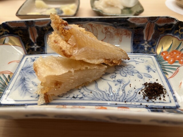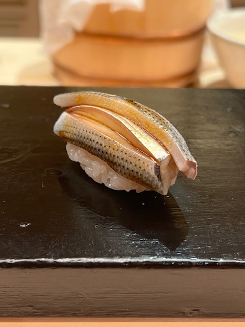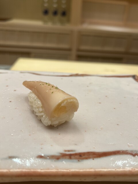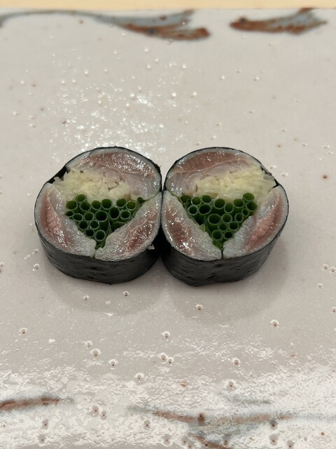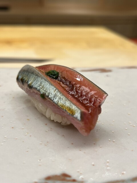 光り物鯵、小肌は締め具合が絶妙で香りと旨みのバランスが秀逸でした. 穴子といった江戸前ならではの仕事も圧巻で、ひと口ごとに伝統の技を実感できます.