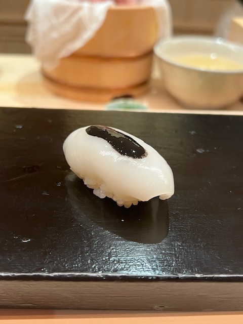 今回新メニューニタリ鯨、西京漬け焼いた平貝(普段平貝が色々食べ方いつもあまり好きじゃない 陸さんの西京漬け 平貝の繊維柔らかくて 私の一番美味しい平貝をやっと見つけた!)、笛鯛、新イカ、秋刀魚、新いくら手巻き, 全て絶品だった!