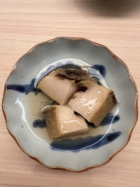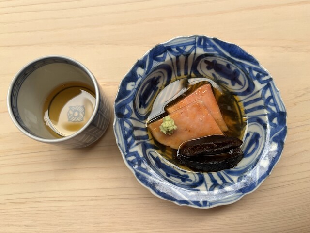 特にあん肝煮椎茸と小笠原味醂の組み合わせ,すごくビックリした美味しい. 日本一のあん肝料理生まれた! 青海鼠三杯酢と火入れ完璧な白子, めちゃくちゃ美味しい.他の摘みと握り,全て安定的な味わい.