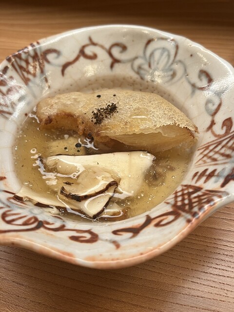 今回お摘みの新作は’松茸、トロ、干瓢の小丼’, これは顎落ちた程の美味しかった! 鮪溶ろけた脂加わることで松茸の香り、味わいが一段と豊かに, 又干瓢の甘さ加えて, 何杯でも食べられちゃいそうでした.